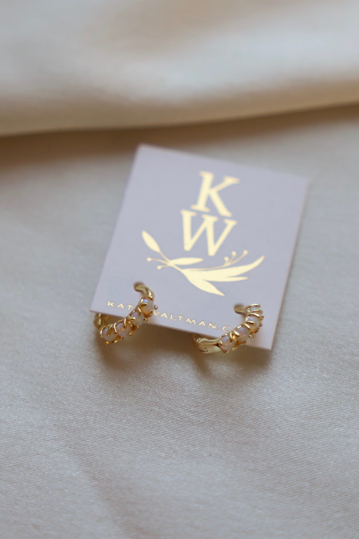 Introducing our stunning Opalite Huggies – the perfect combination of elegance and uniqueness. With pink or white opals, these huggies will elevate any look. Opalite is known for its calming and balancing properties, you'll not only look great but feel great too.