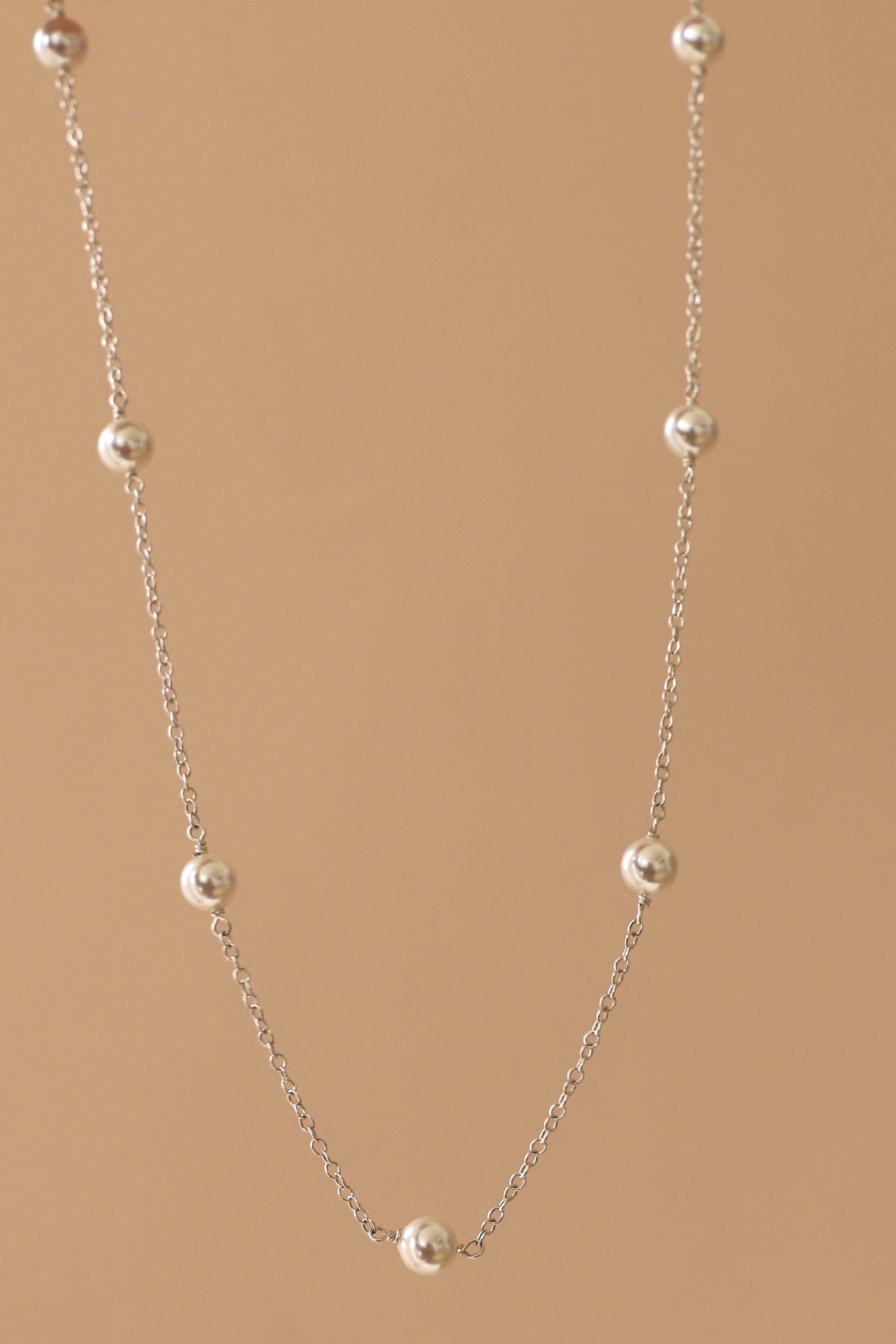 SILVER PEARL STATION NECKLACE