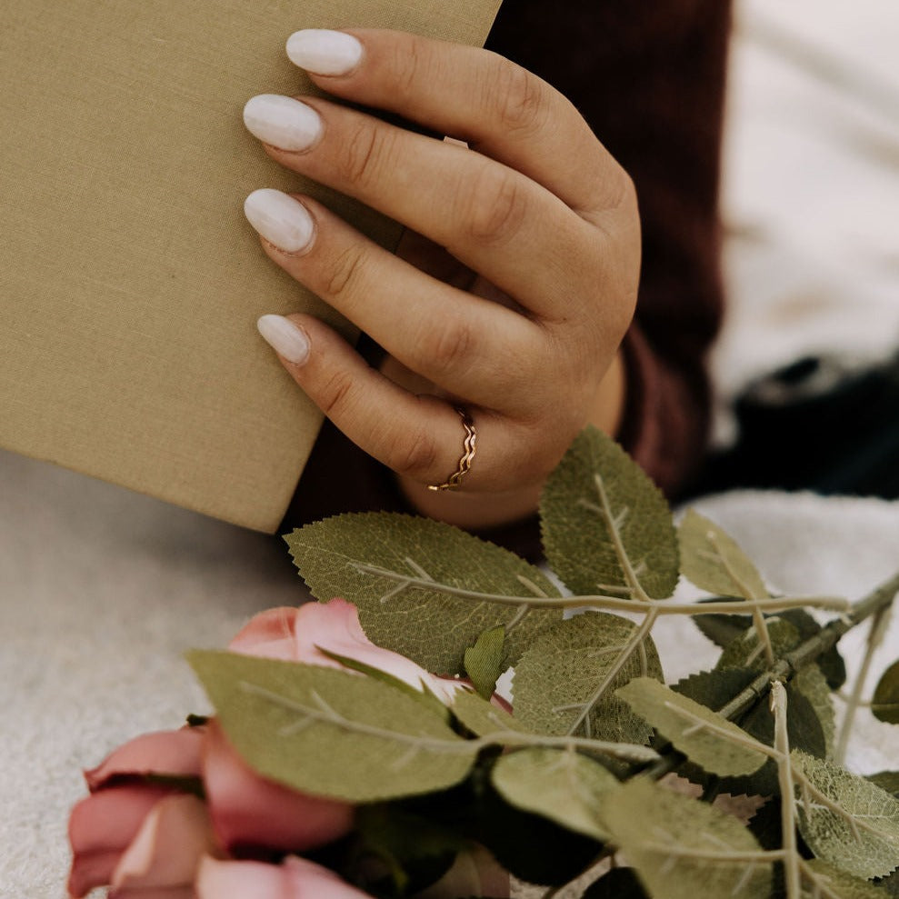 The Stevie Gold Filled Wave Ring is a 14k gold stacking ring and is waterproof, exercise proof, and tarnish and wear resistant. Perfect as a stand alone ring or stacked together to create a rippling wave effect. Listing is for a single ring.